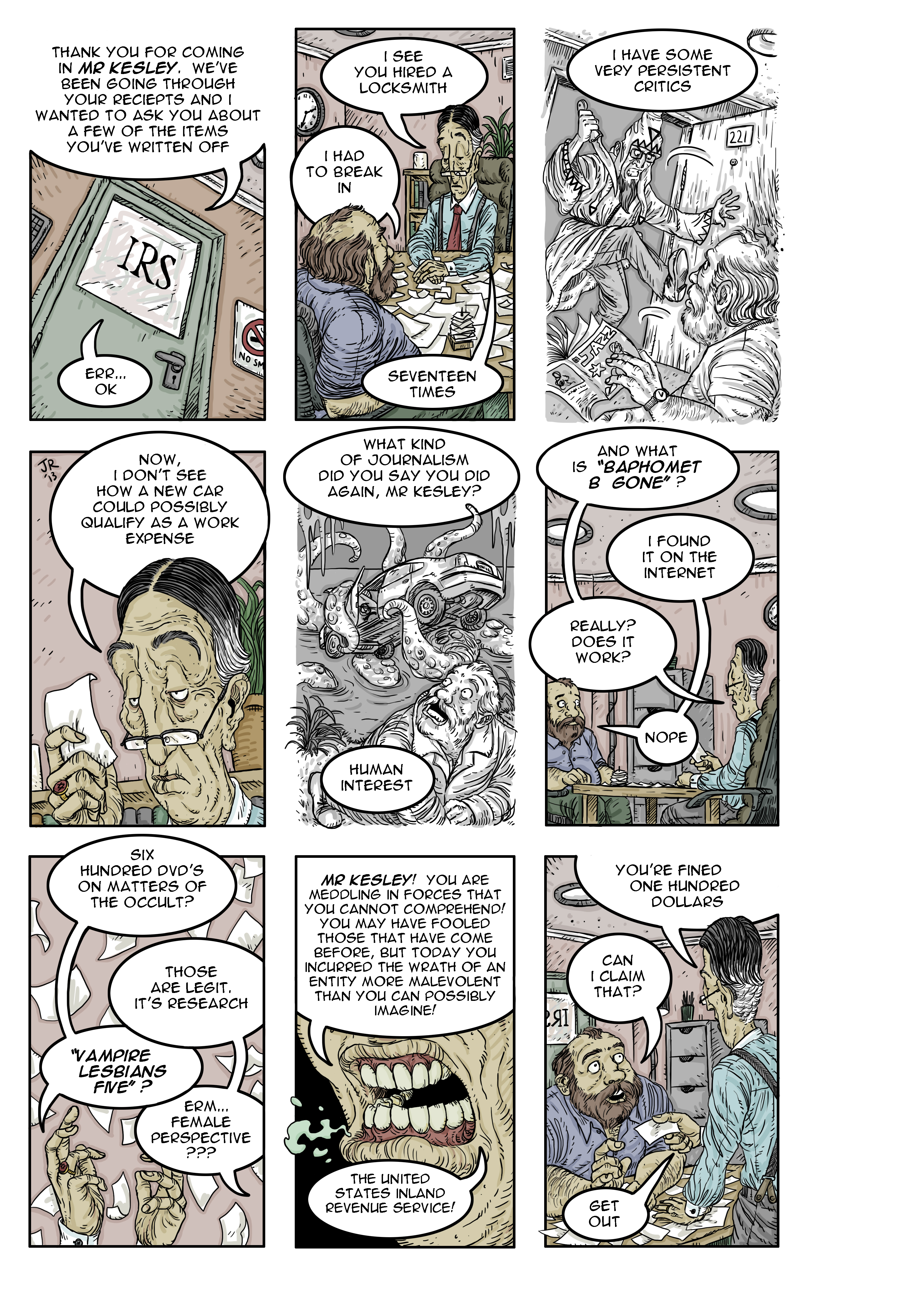 Bob has faced murderous cults,monsters and all manner of dangers that lurk with the shadow in the pursuit of a great story for his blog. Today he must face the most deadly adversary he has ever found himself pitted against – The IRS.