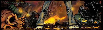 There was no wind, no sound, even the air Jason breathed seemed stale, somehow tainted by this place. If this was not Hell, it came a close second. Surrounding him on all sides, buildings torn from their foundations lay in ruins. Those left standing were little more than blackened, burnt-out husks of concrete, blighting the skyline.