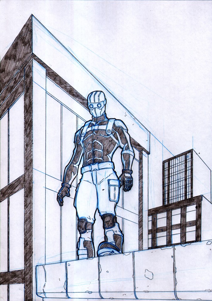 With all the titles for the second anthology well under way I should be able to keep bringing you some sneak peeks of the art as we move closer and closer to the November launch. So without further ado here’s a look at Ben Ashodi aka ‘The Hand’ in ‘Stolen’ as drawn by Cormac Hughes. As you can see he’s taking a leaf out of Batman’s book and surveying his city from on high. In the case of ‘The Hand’ it’s London rather than Gotham where he hangs his mask.