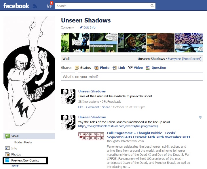 Haven’t got an ipad or a smart phone to read it on? not a problem you can also buy and read the comic (and all the comics from Unseen Shadows) from our facebook page. Just look for the Preview/Buy Comics link in the navigation.